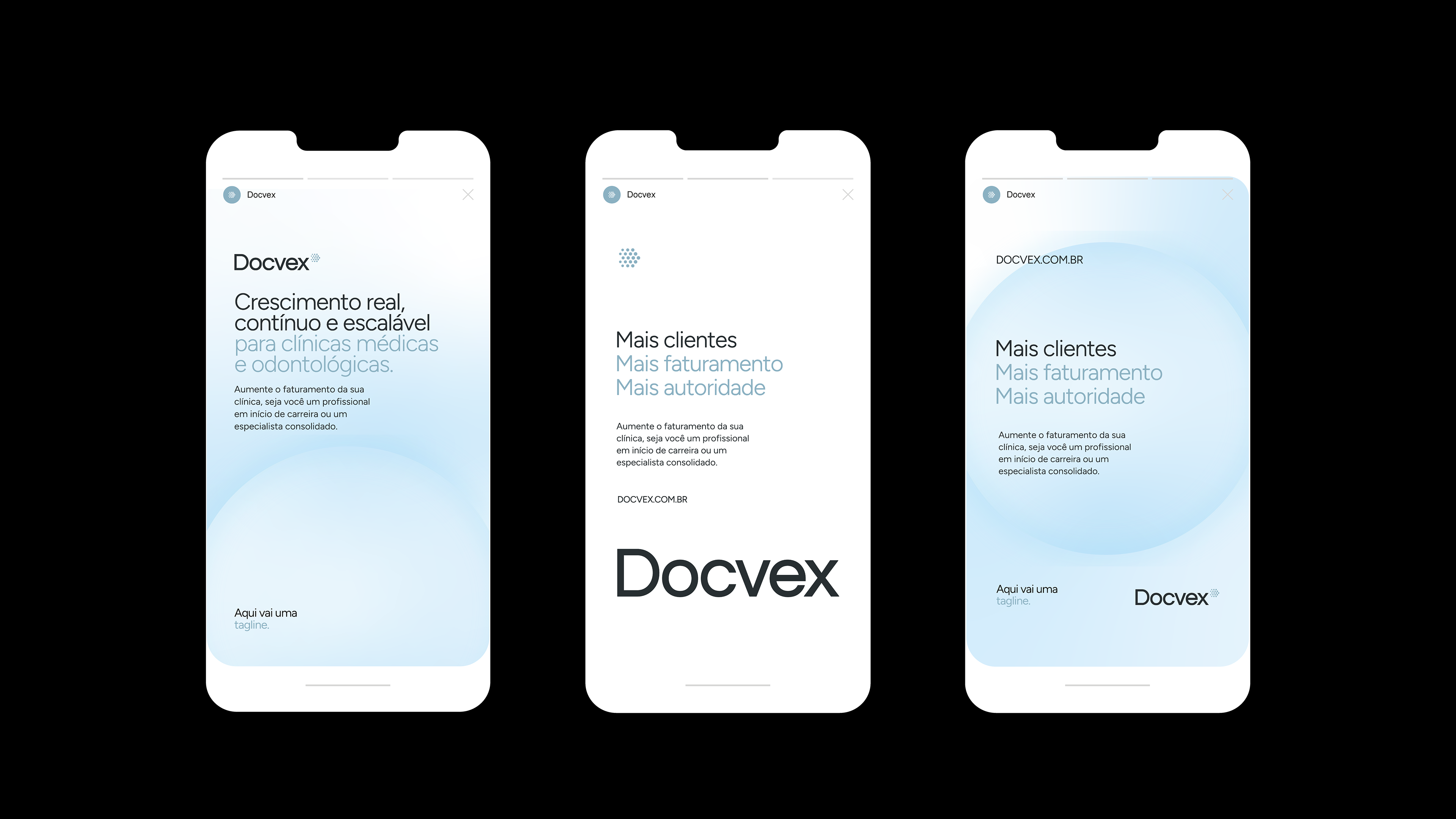 A Docvex se posiciona como um hub de soluções estratégicas para o crescimento empresarial de médicos e dentistas. A identidade visual da Docvex é uma ferramenta estratégica para consolidar a marca no setor de crescimento para clínicas médicas e odontológicas.